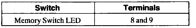 To check the memory set switch LED, connect the positive meter lead to terminal 8 and the negative lead to terminal 9. The meter should indicate greater than 0.3 volts. Reversing the leads, the meter should read OL.