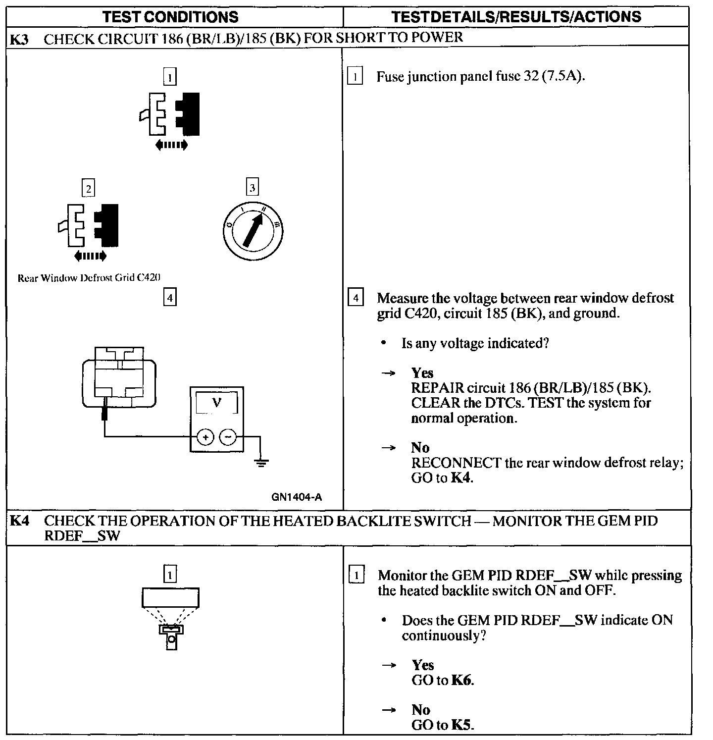 Test K: Back Window Defroster Will Not Shut Off Automatically
