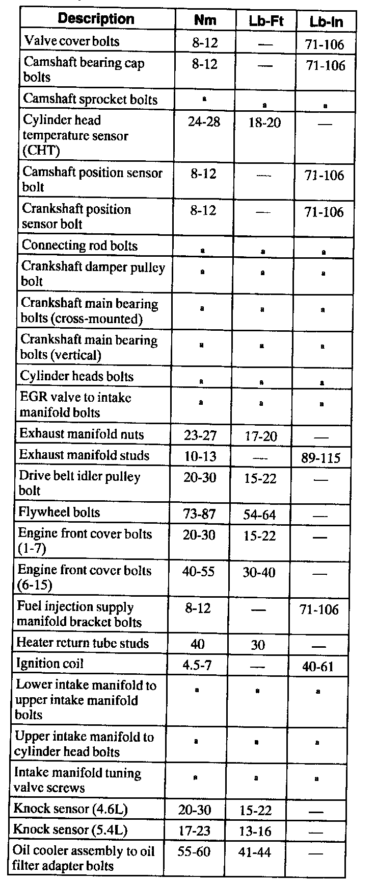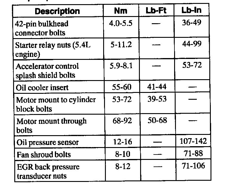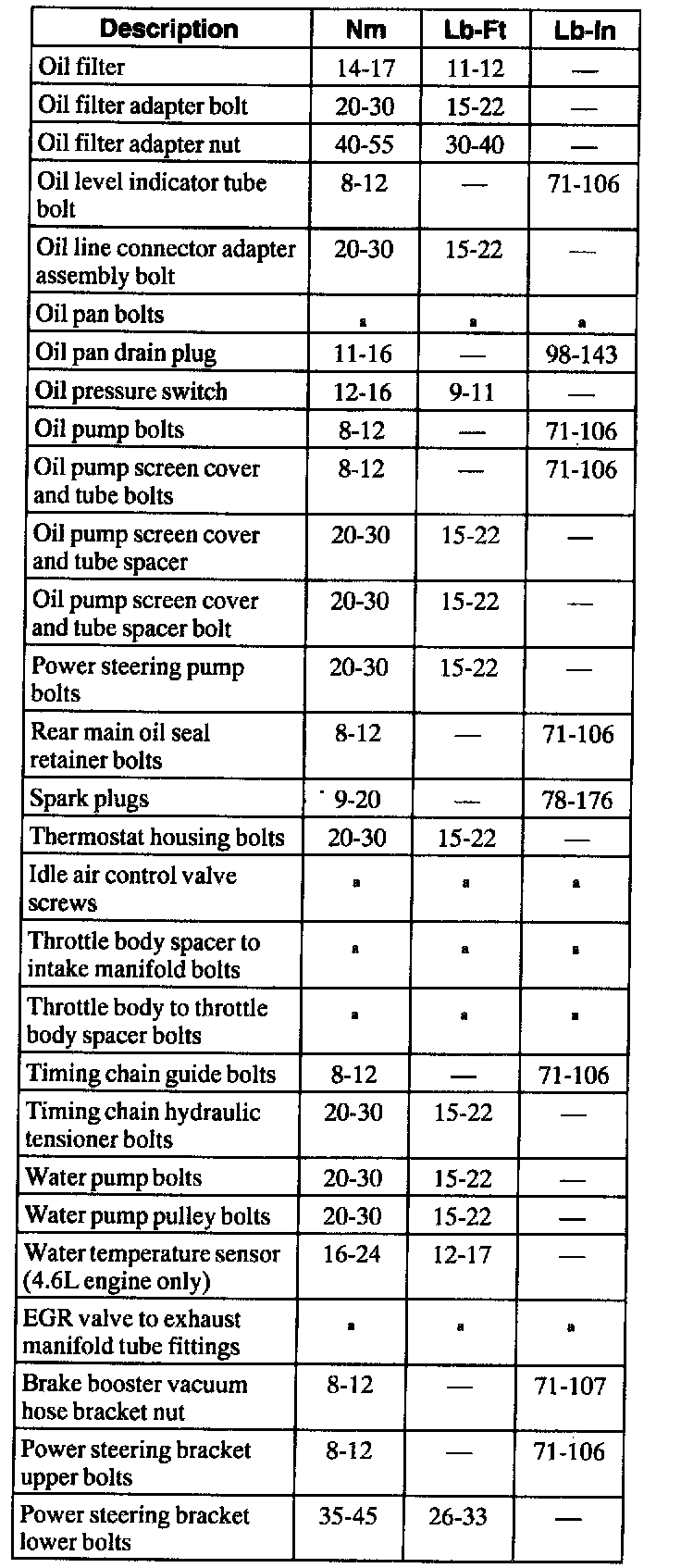 General Torque Specifications