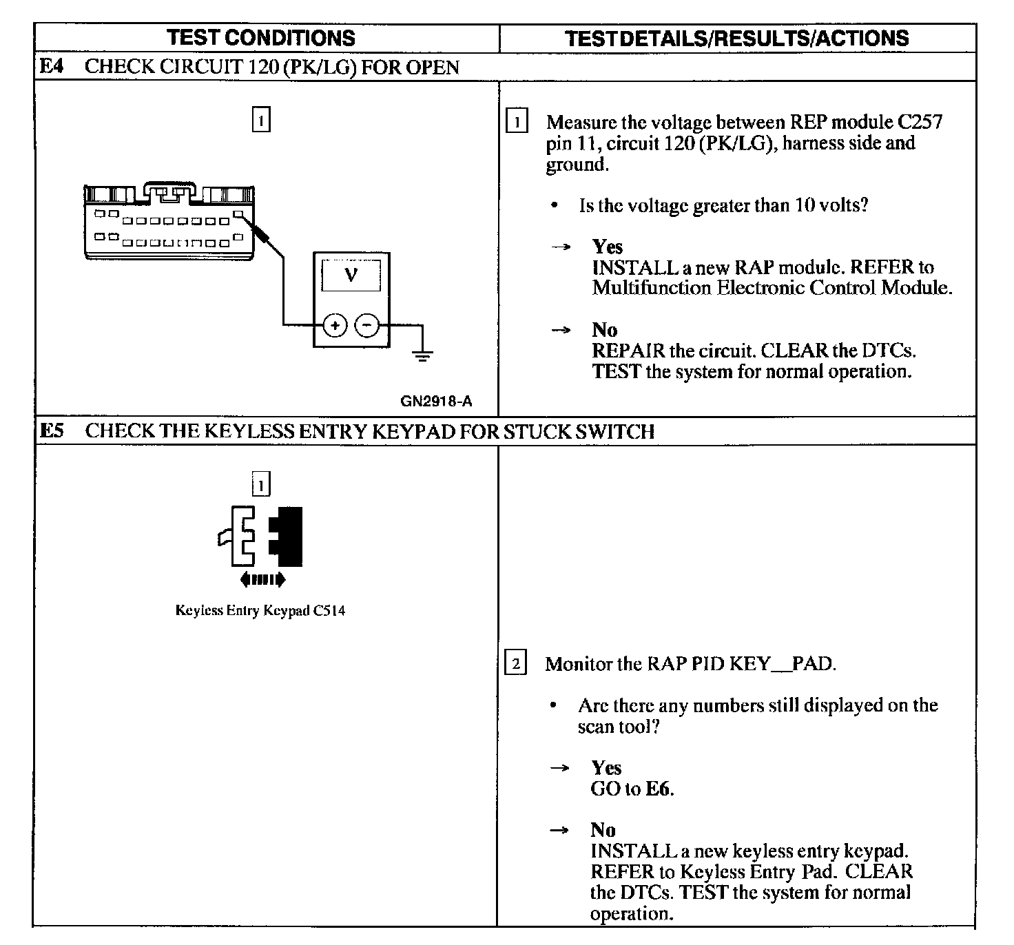 Test E: Doors Do Not Lock/Unlock Using the Keyless Entry Keypad