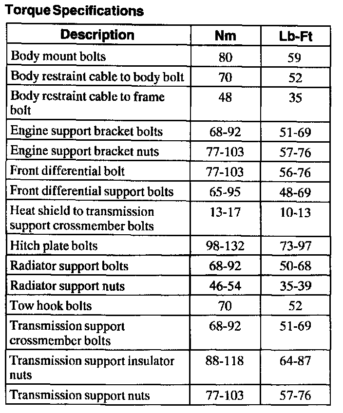 Torque Specifications: