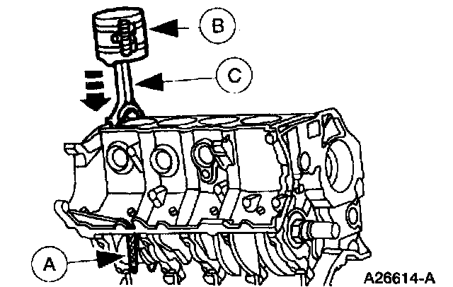 Note: Steps 13, 14 and 15 are for all eight connecting rods, rod caps and pistons. Only one connecting rod, rod cap and piston is shown.