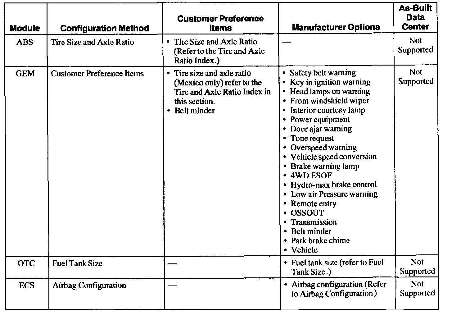 Module Configuration Index - Super Duty Series F-250, F-350, F-450, F-550, Motorhome