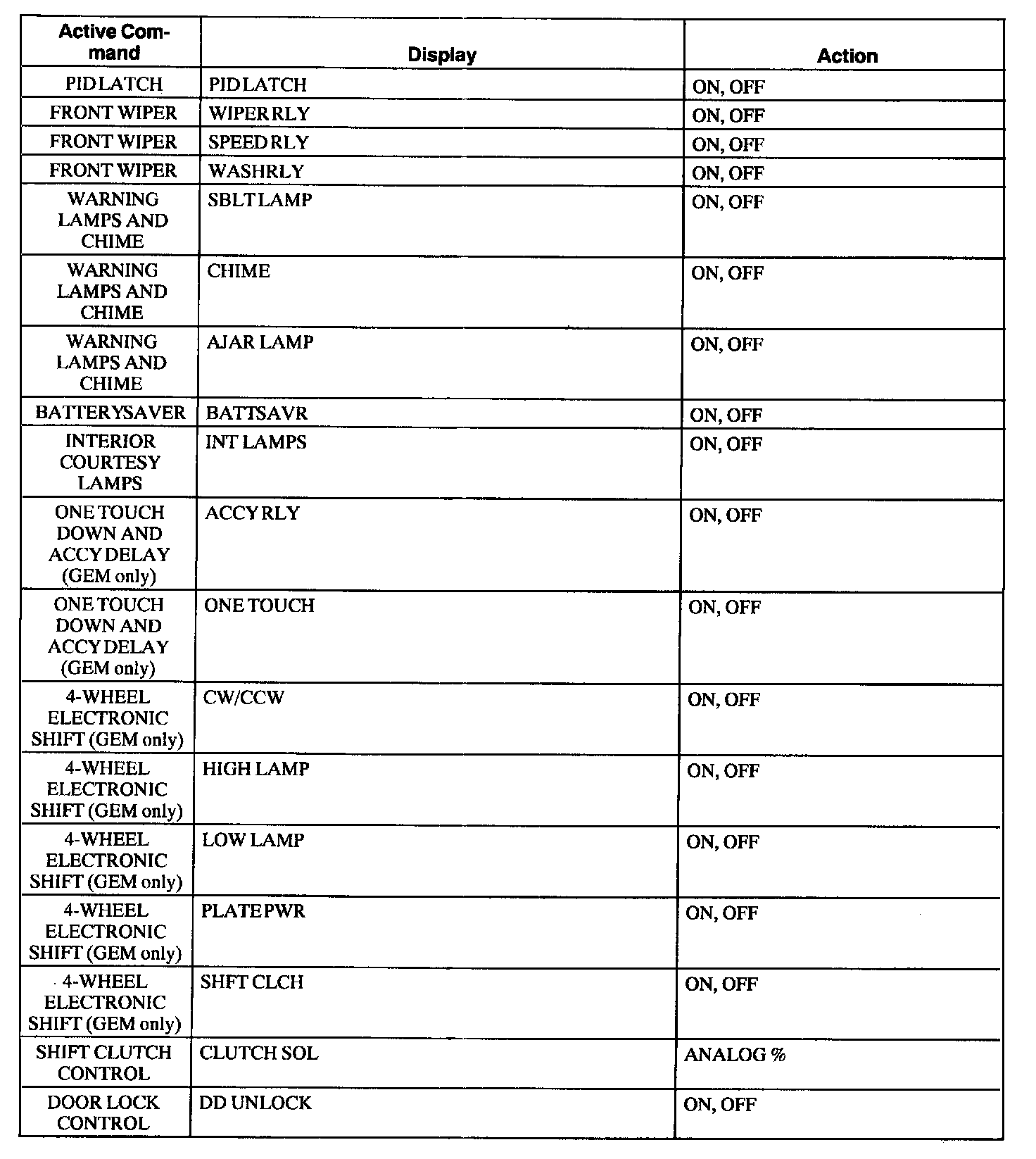 GEM/CTM Active Command Index