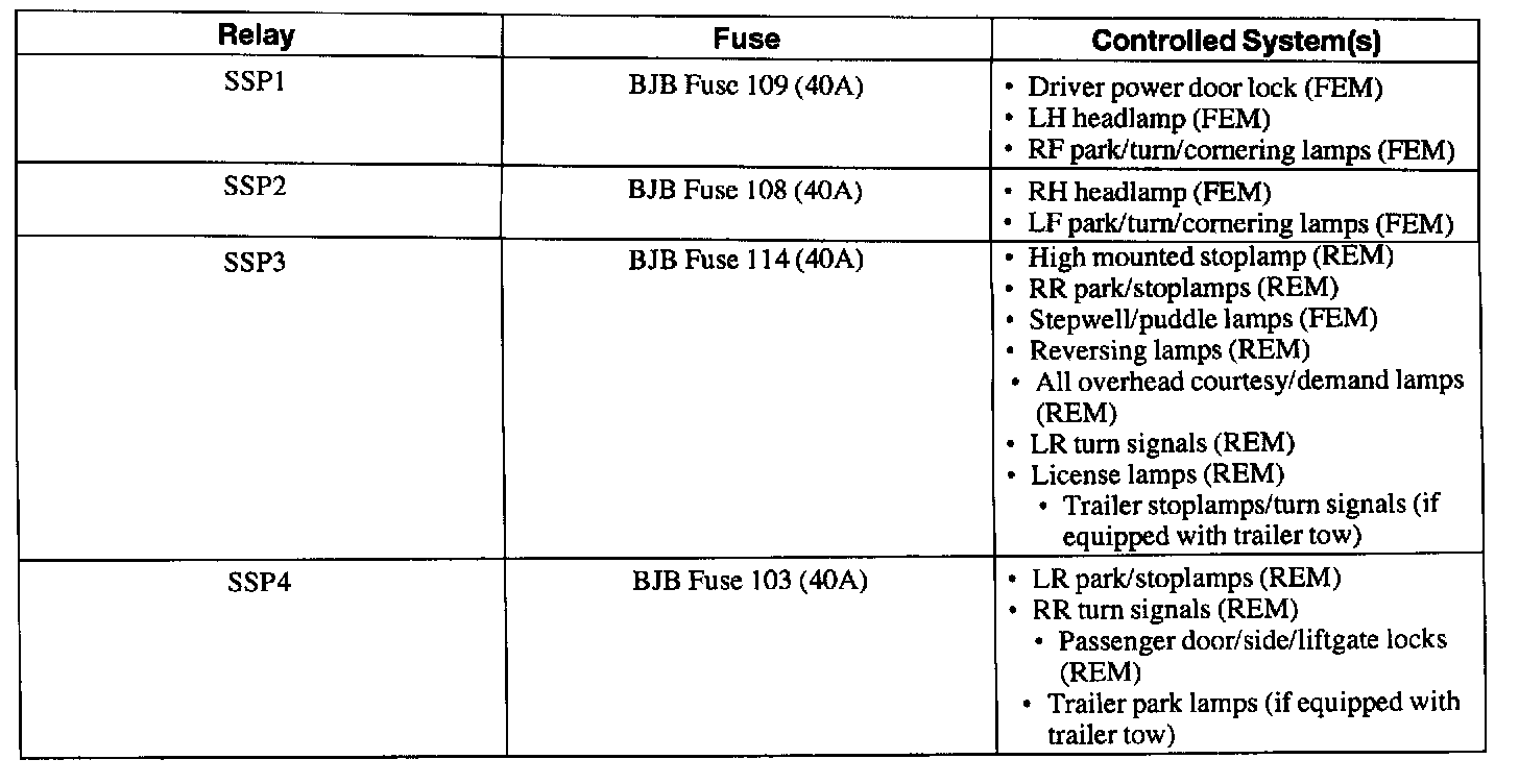 When diagnosing a SSP relay, check that all systems for that relay are inoperative. Refer to Lighting and Horns if: