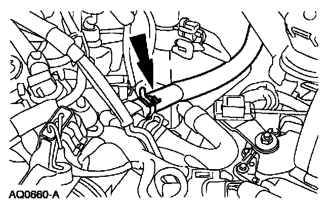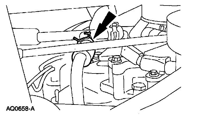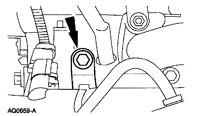 6. Remove the bolt from the water bypass tube and position the bracket out of the way.