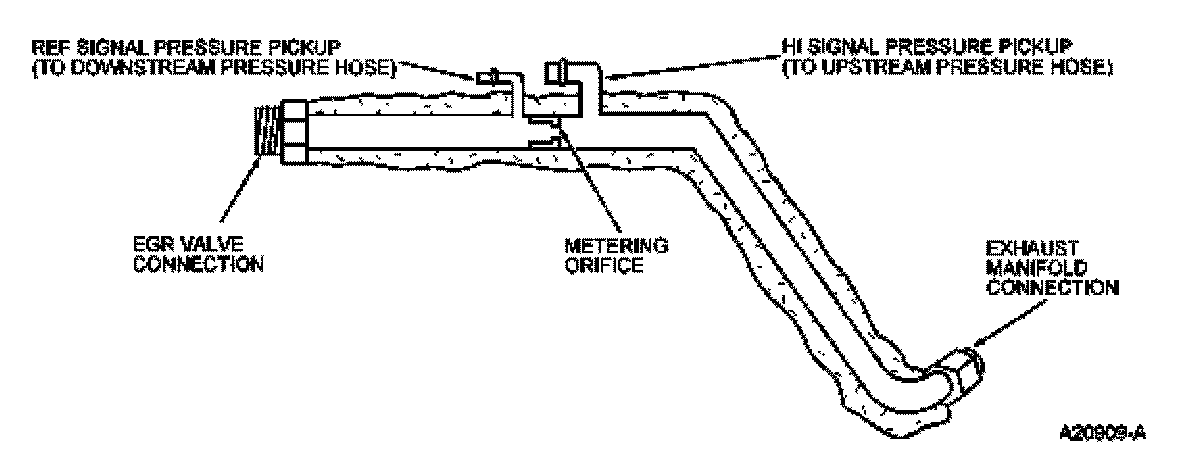 The orifice tube assembly (Figure 85) is a section of tubing connecting the exhaust system to the intake manifold. The assembly provides the flow path for the EGR to the intake manifold and also contains the metering orifice and two pressure pick-up tubes. The internal metering orifice creates a measurable pressure drop across it as the EGR valve opens and closes. This pressure differential across the orifice is picked up by the differential pressure feedback EGR sensor which provides feedback to the PCM.