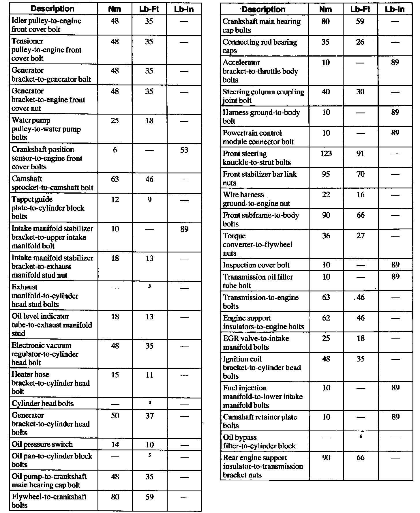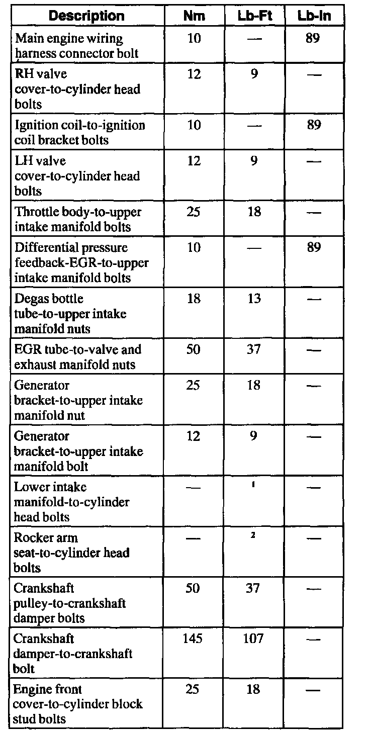 General Torque Specifications