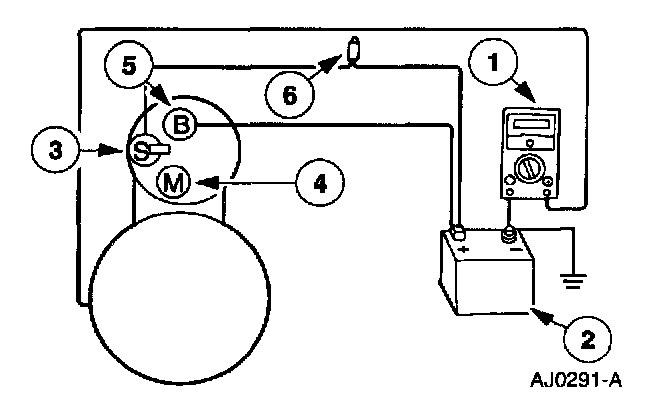 1. Connect the 73 Digital Multimeter positive lead to the starter motor housing (the connection must be clean and free of rust or grease). Connect the negative lead to the negative (-) battery pin.