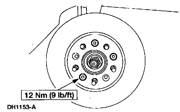 Note: If the brake disc cannot be removed easily, apply Rust Penetrant and Inhibitor F2AZ-19A501-A or equivalent meeting Ford specification ESR-M99C56-A on brake disc to wheel hub mating surfaces.