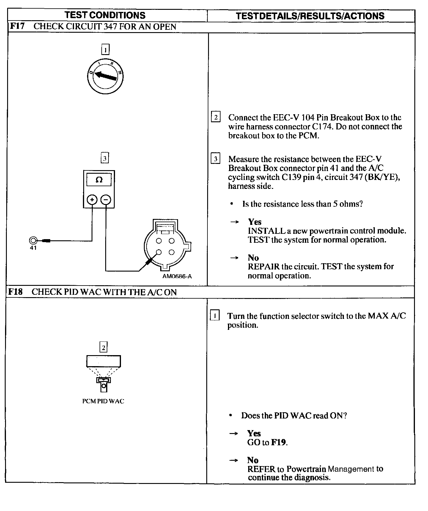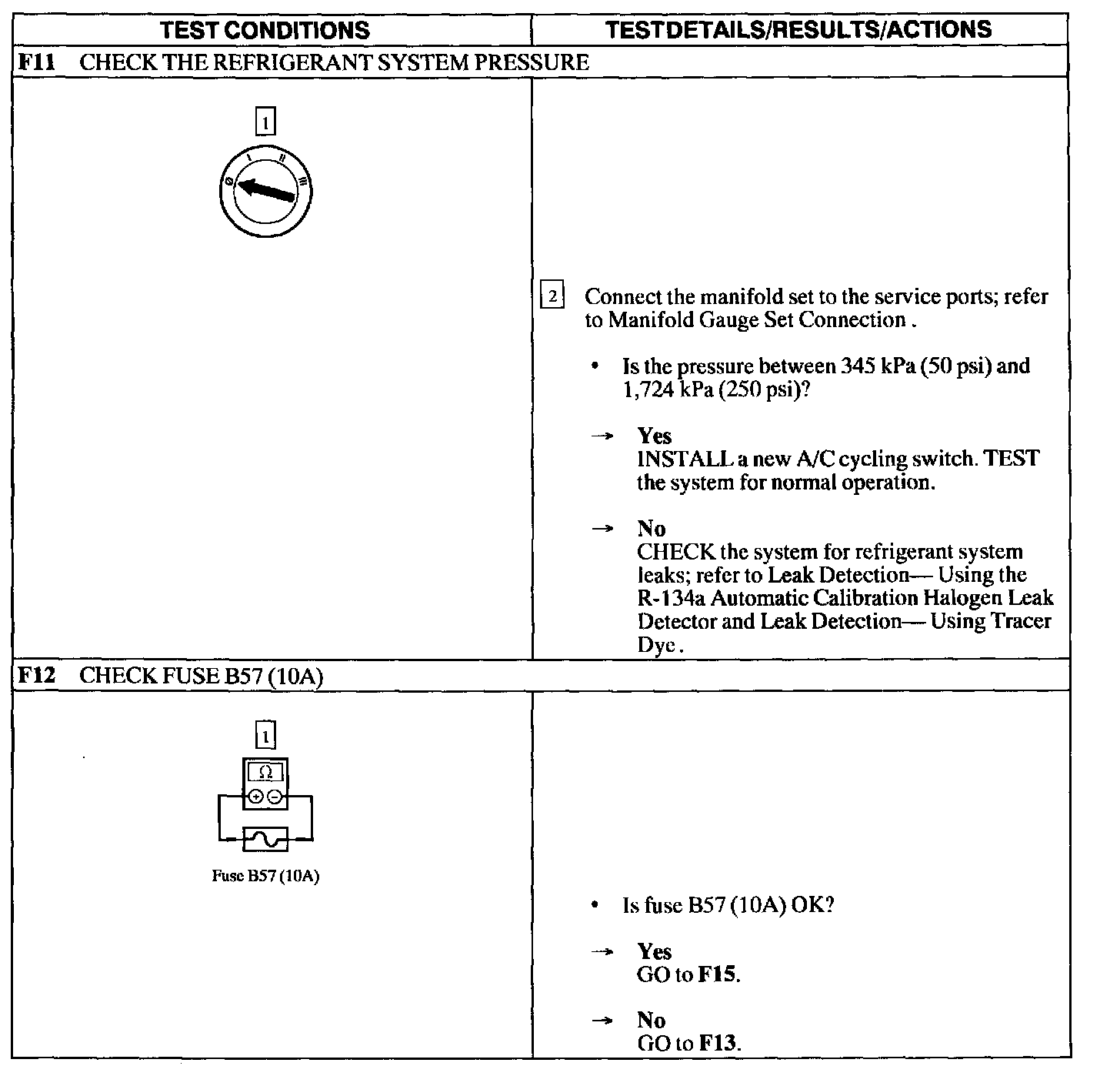 Test F: A/C Does Not Operate or Does Not Operate Correctly