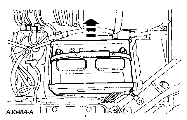 3. Remove bolt and the battery hold-down clamp.