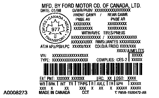 Vehicle Certification (VC) Label - Canada (Typical)
