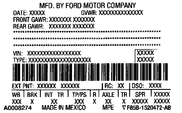 Vehicle Certification (VC) Label - Mexico (Typical)