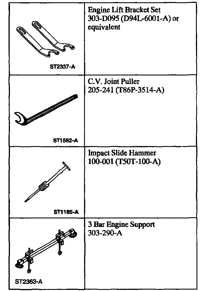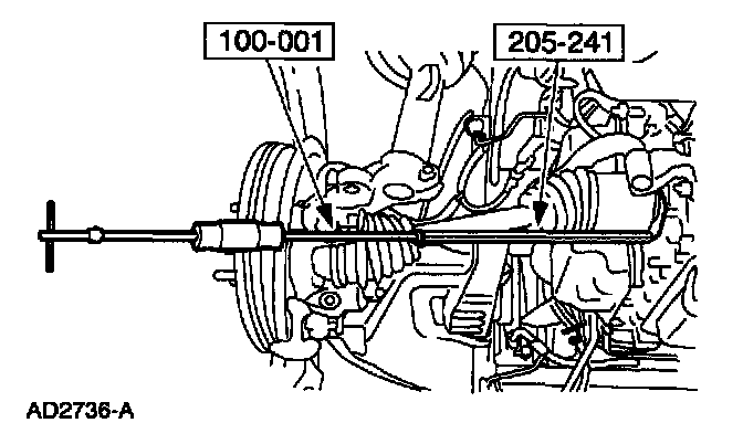 38. Note: The use of mechanic's wire will aid in positioning the halfshafts out of the way. Using the special tools, remove the LH halfshaft from the transaxle and position out of the way.