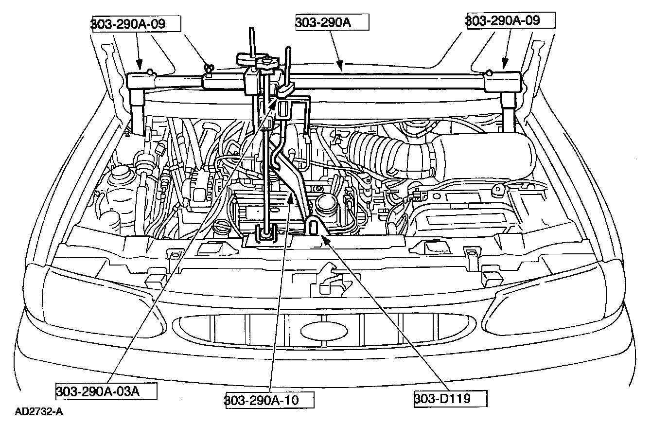 19. On vehicles equipped with the 3.0L engine, install the spreader bar.
