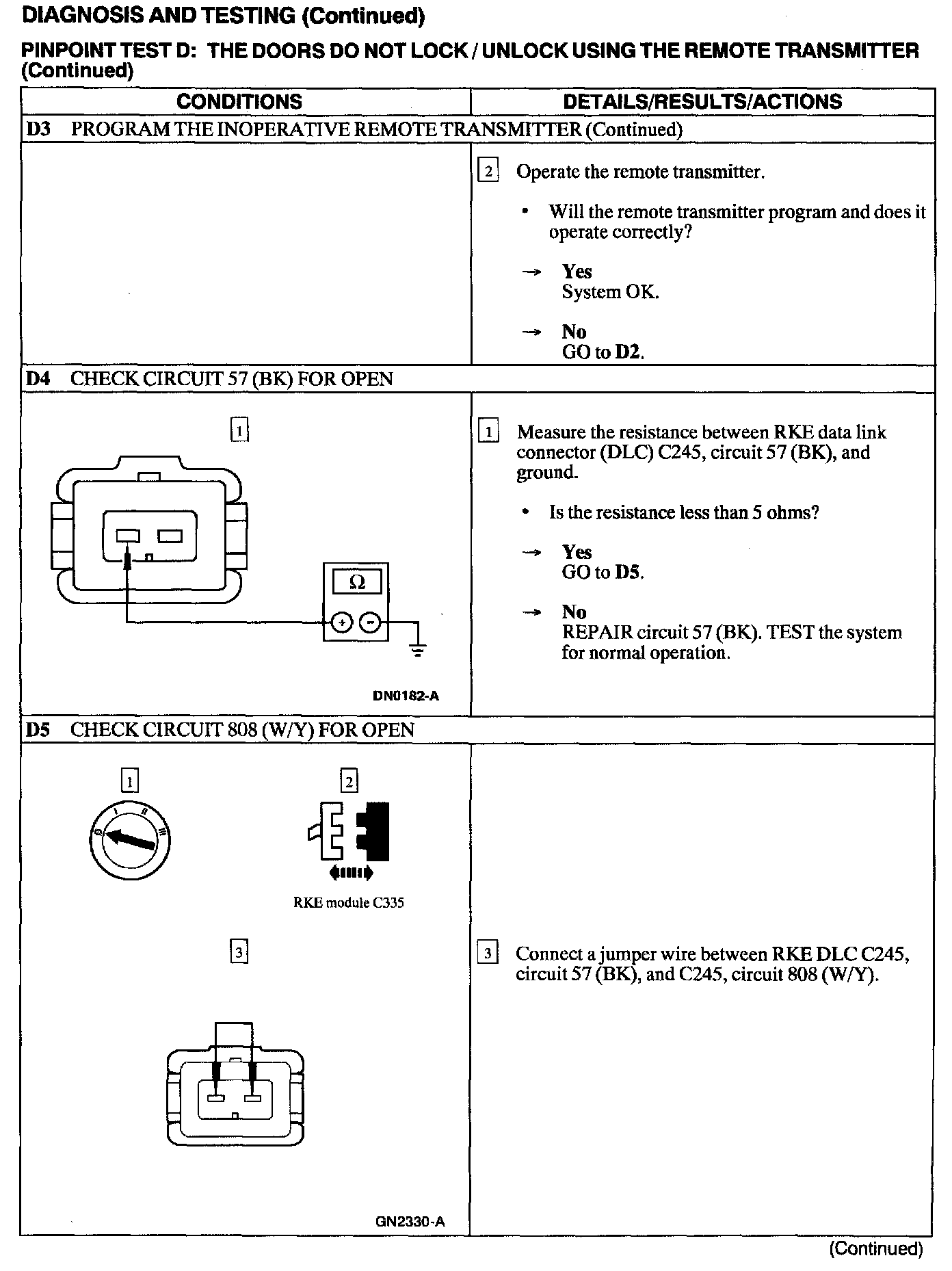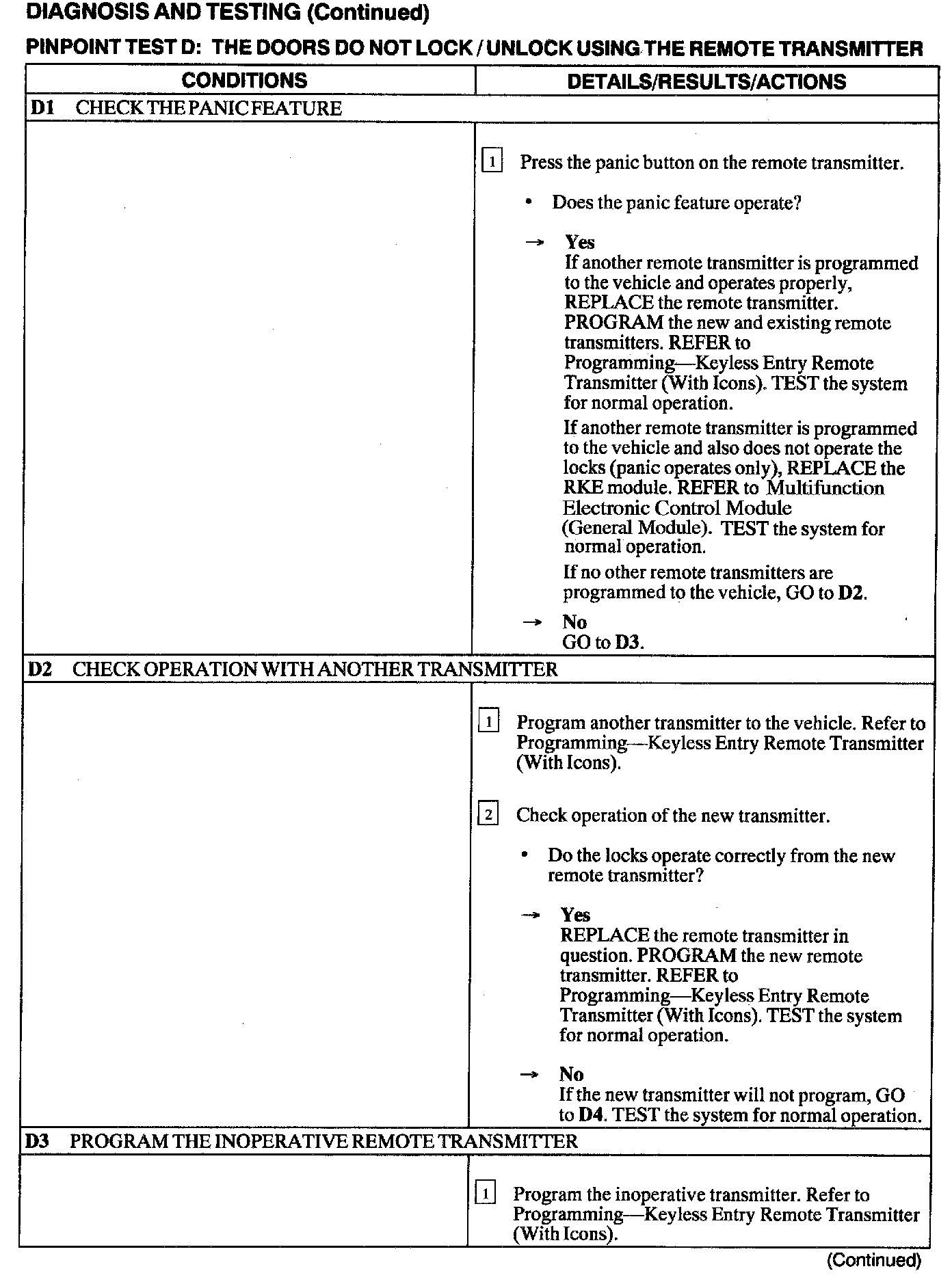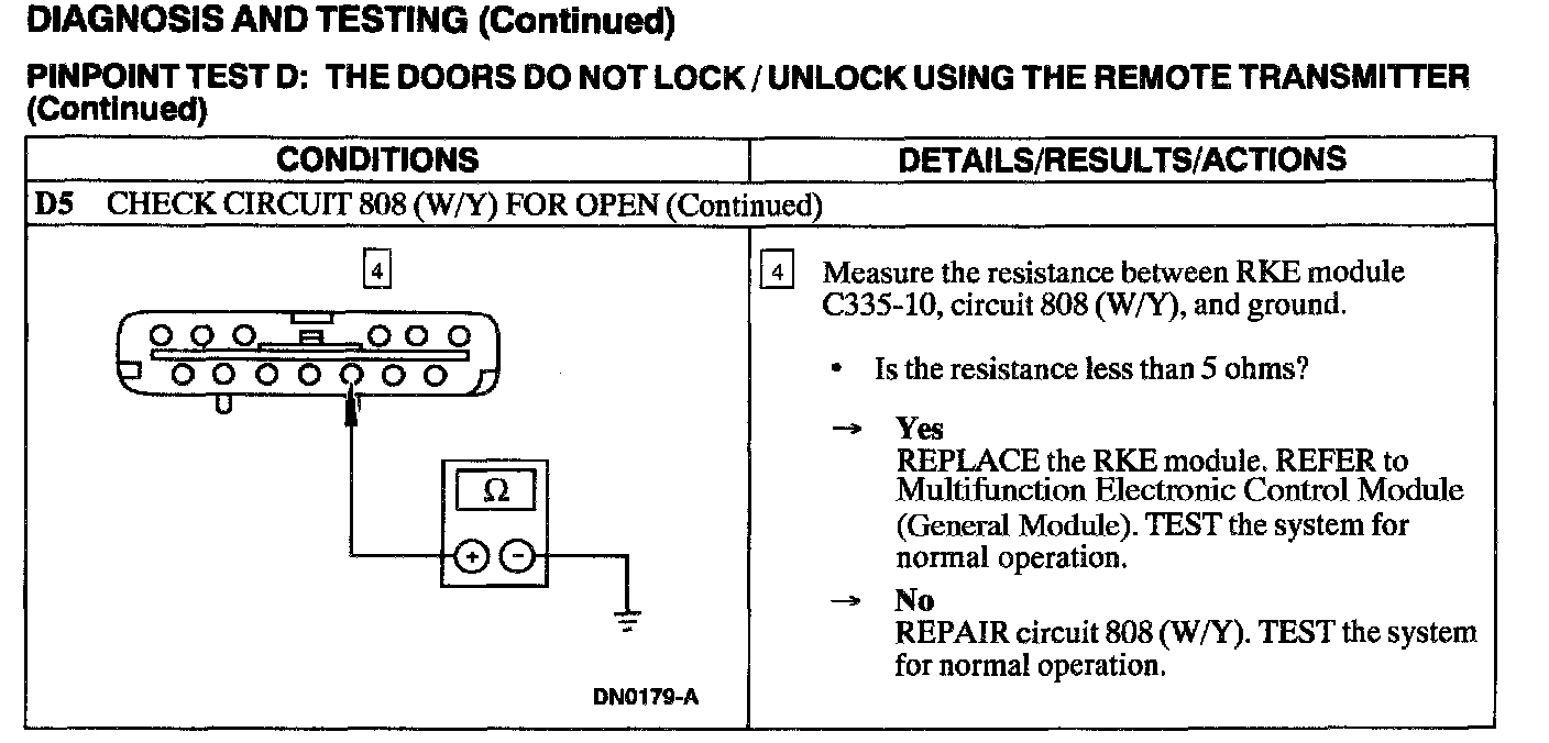 Test D: Doors Do Not Lock/Unlock Using the Remote Transmitter