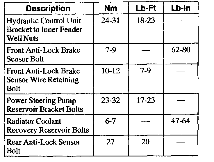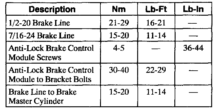 Torque Specifications