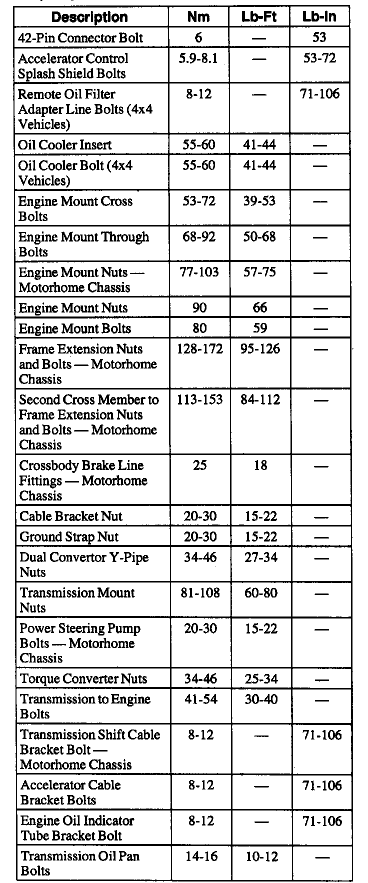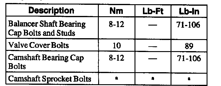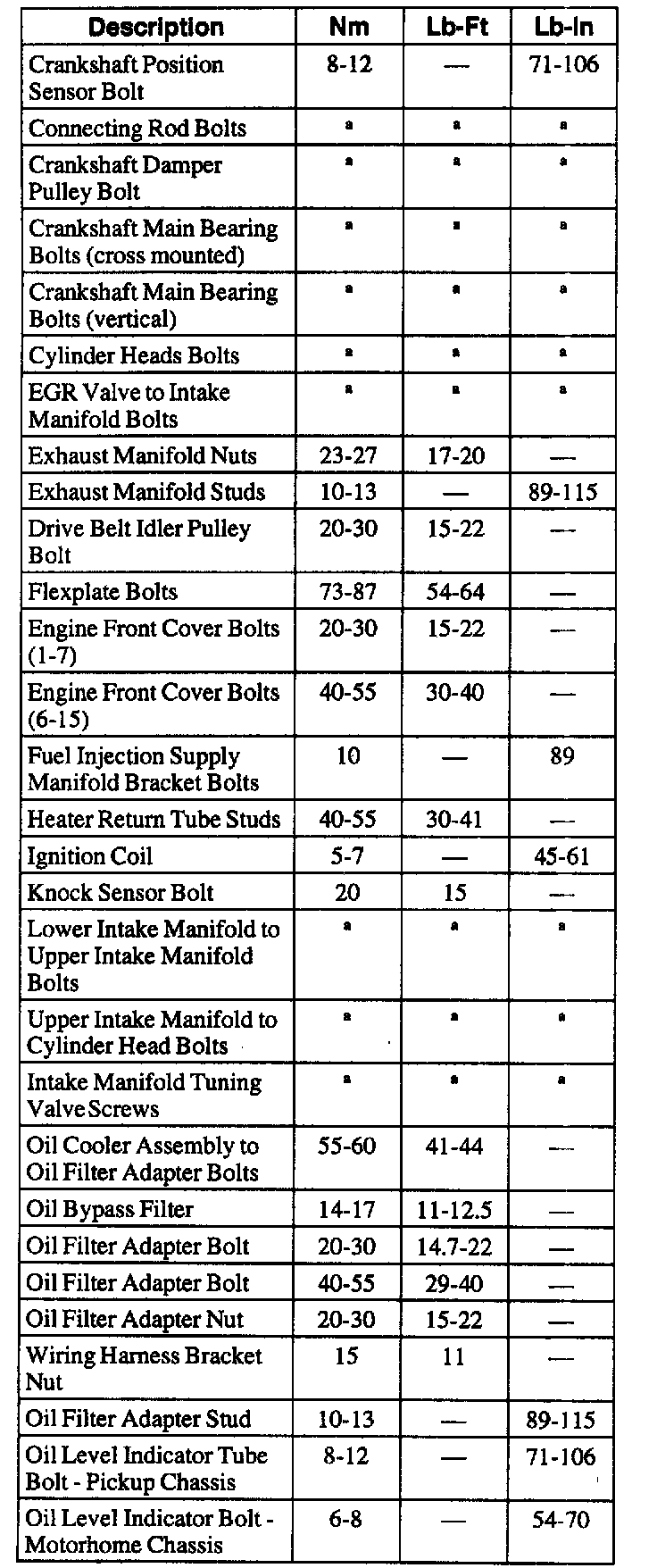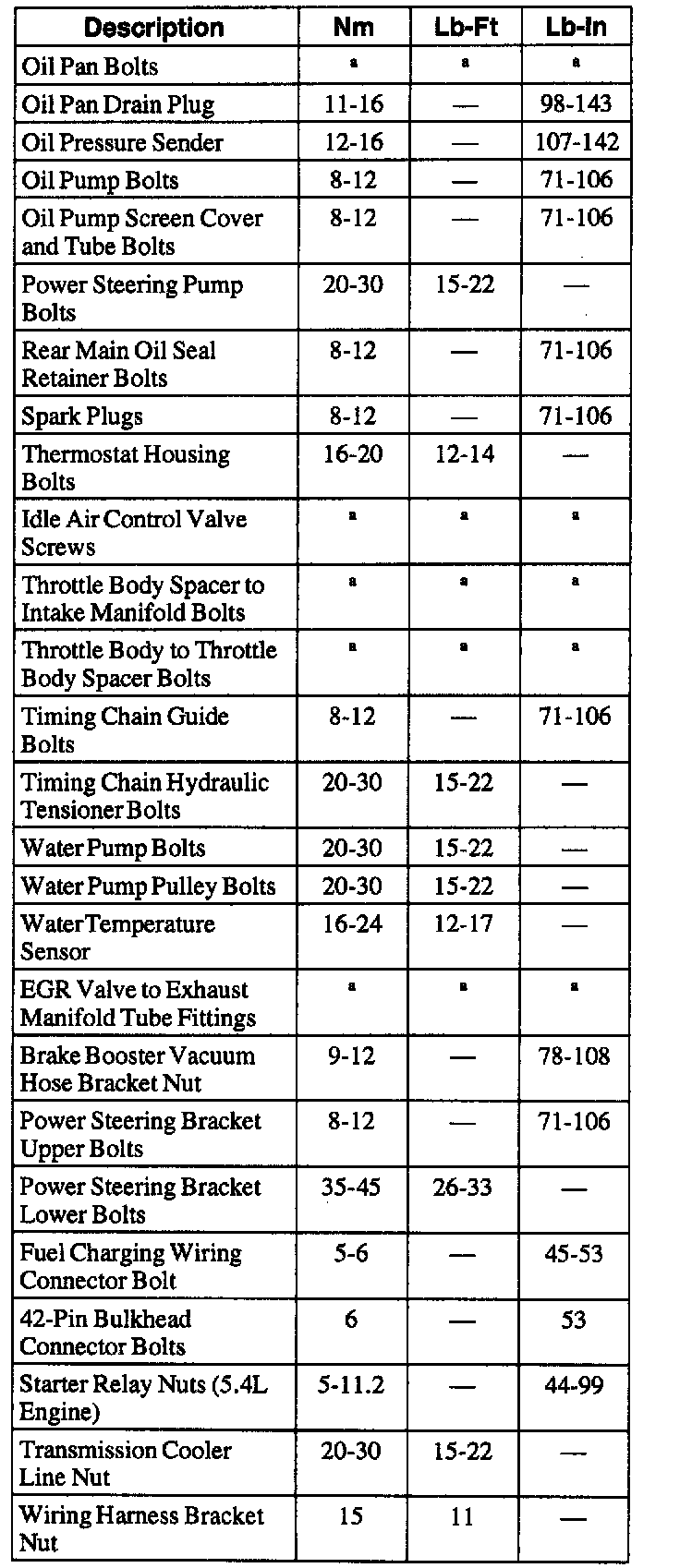 General Torque Specifications