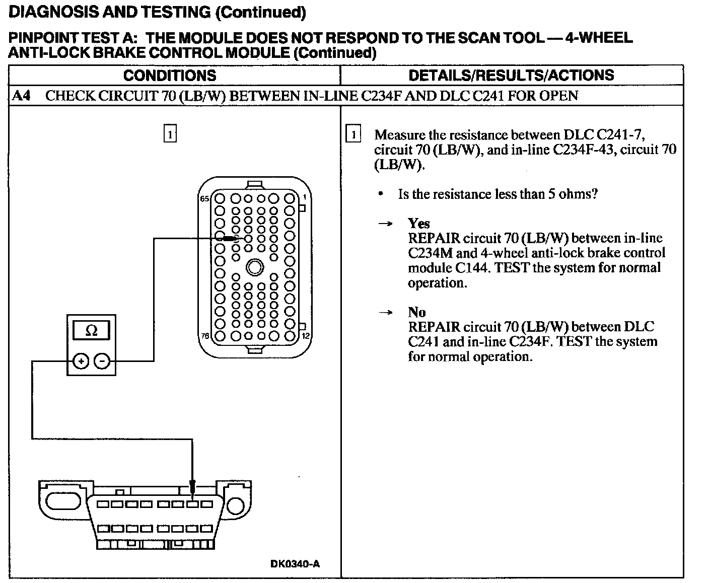 Test A: Module Does Not Respond To Diagnostic Tool - ABS Module