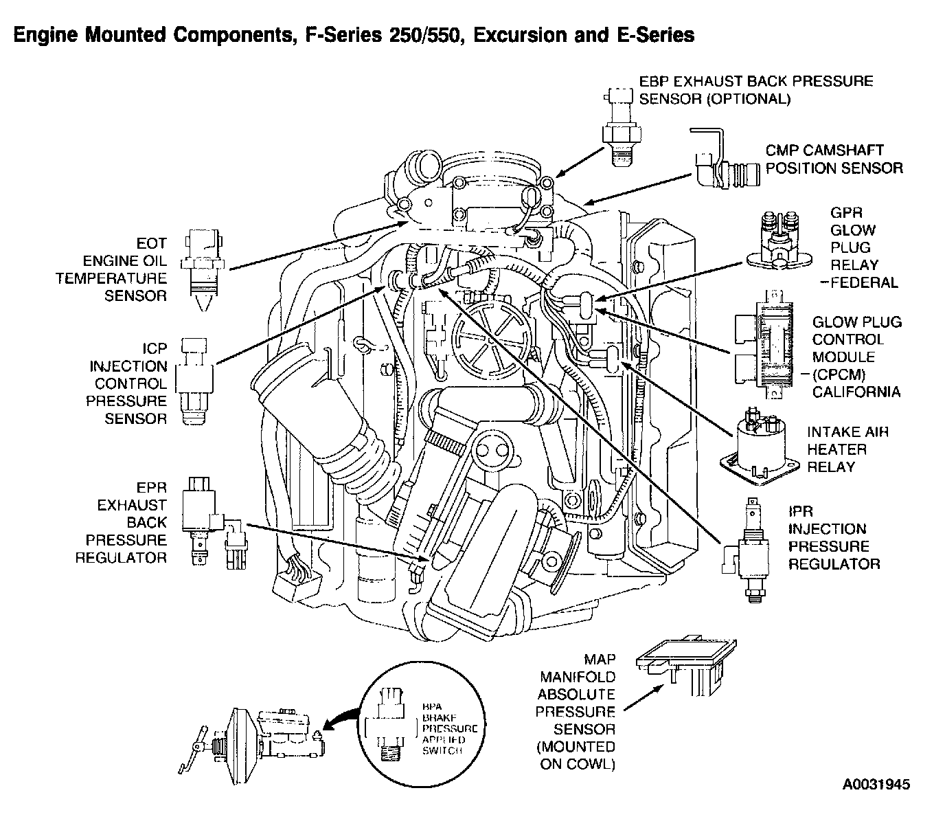 Engine Mounted Components, F-Series 250/550, Excursion and E-Series:
