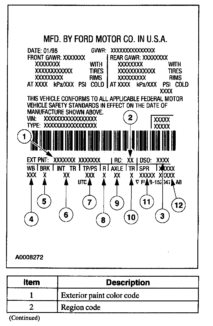 VEHICLE CERTIFICATION LABEL REFERENCE