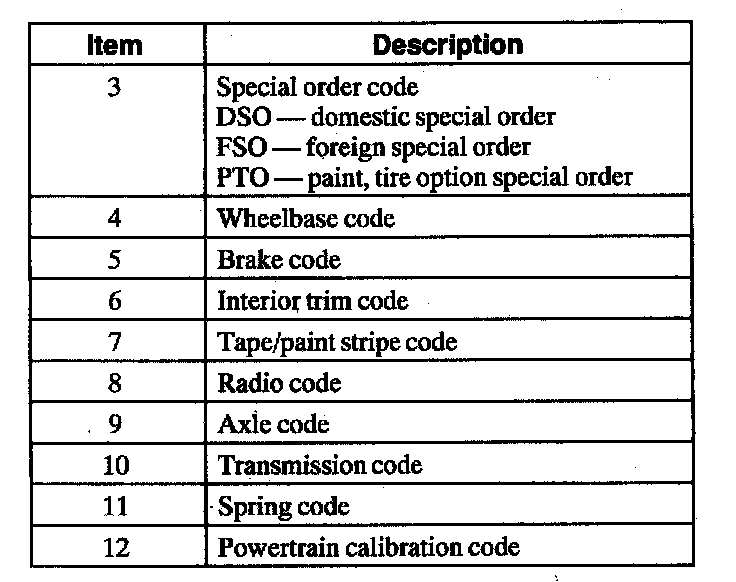Position 2 - The vehicle identification code is as follows.