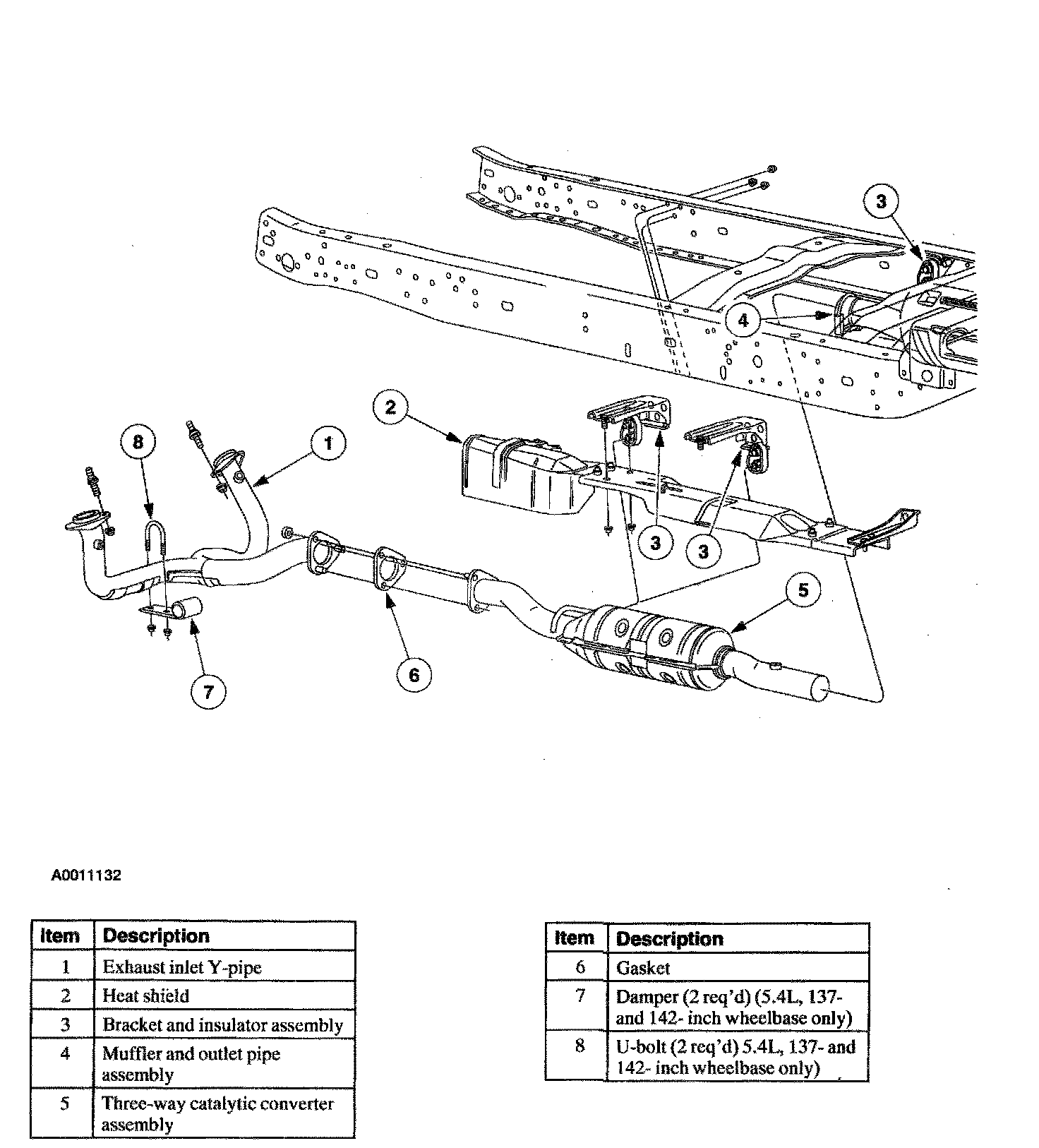 Inlet Pipes And Catalytic Converter - Excursion, 5.4L And 6.8L Engines: