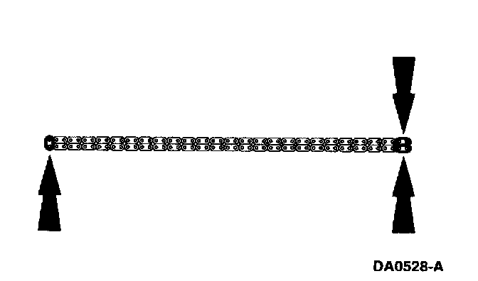 If copper links are not visible, mark two links on one end and one link on the other end, and use as timing marks.