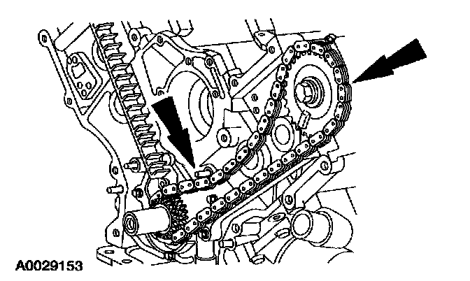 CAUTION: Since the engine is not free-wheeling, if the crankshaft or the camshafts are moved in any manner during removal and installation the crankshaft and camshaft must be Desynchronized.CAUTION: Unless otherwise instructed, at no time when the timing chain are removed and the cylinder heads are installed may the crankshaft or camshaft be rotated. Severe piston and valve damage will occur.