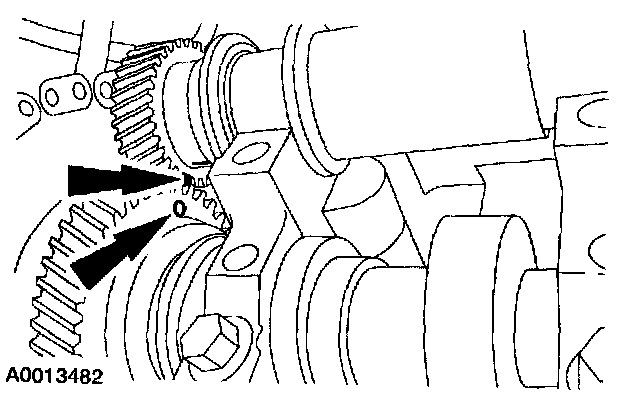 Align the chalk mark on the balance shaft with the camshaft timing mark as shown.