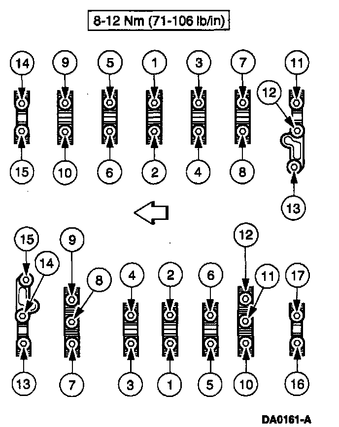 Tighten the bolts in the sequence shown to 8-12 Nm (71-106 lb/in).