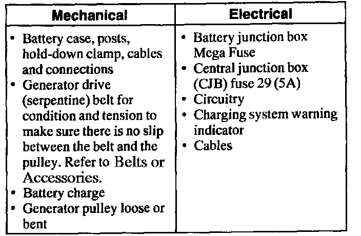 2. Inspect the charging system to determine if any obvious mechanical or electrical concerns exist. If found, repair as necessary and test the system for normal operation. Refer to tables.