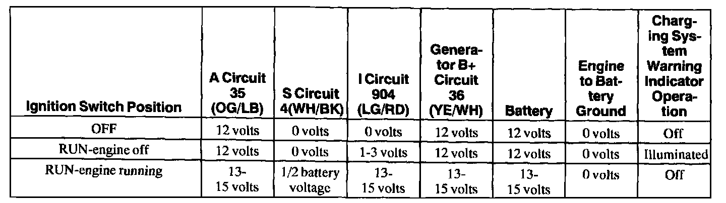 ^ With the ignition switch OFF, the charging system warning indicator should be OFF.
