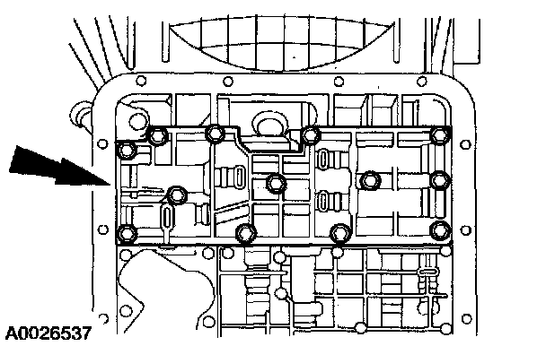 10. NOTE: Do not remove the lower-to-upper main control valve body assembly bolts. Keep the main control valve bodies attached as an assembly.
