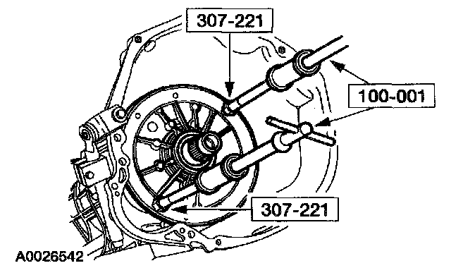 21. CAUTION: The coast clutch, overdrive ring gear, center shaft assembly must be removed as an assembly using special service tool or damage to the overdrive one-way clutch could occur.