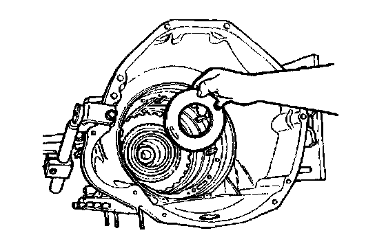 48. To remove the reverse clutch piston, reinstall the reverse clutch pressure plate and the reverse clutch pressure plate retainer snap ring to restrain the reverse clutch piston.