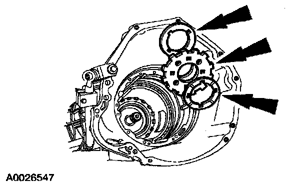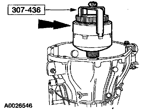23. CAUTION: The coast clutch, overdrive ring gear, center shaft assembly must be removed as an assembly using special service tool or damage to the overdrive one-way clutch could occur.