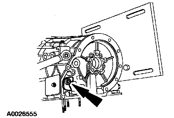 11. Remove the bolts, nut and the solenoid body assembly, by pushing the solenoid body connector upward to help separate the assembly from the case bore.