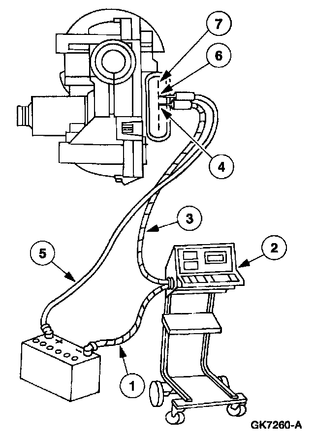 Test the low speed mode by connecting a (5) cable from the battery positive (+) post to the (6) low speed brush terminal (terminal 4) and measure the current draw. If the current draw is greater than 3.5 amperes, install a new windshield wiper motor.