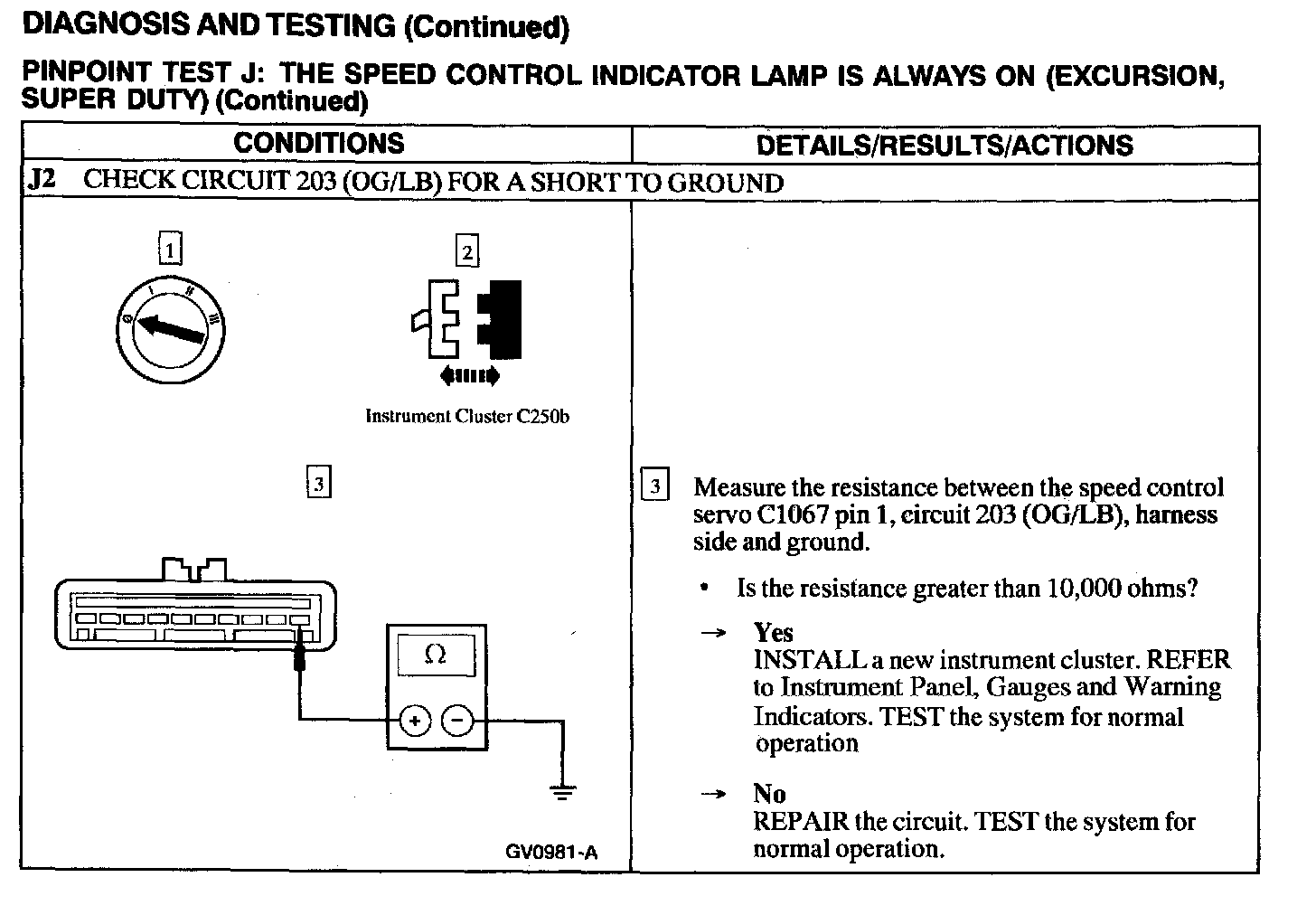Test J: Speed Control Indicator Lamp Is Always on