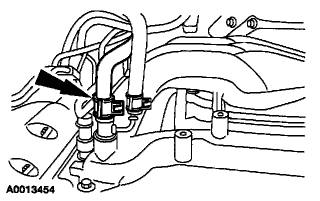 ^ Disconnect the vacuum connector from the fuel pressure regulator.