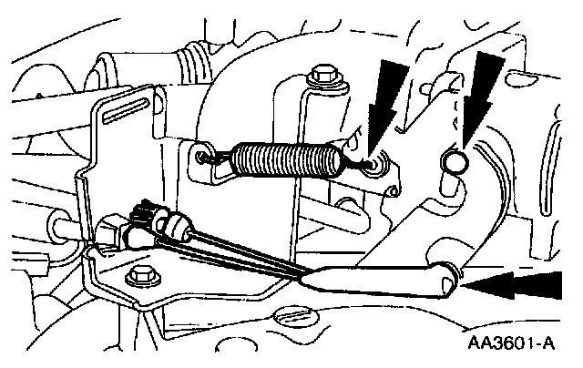 7. Disconnect the accelerator and speed control cables and remove the return spring.