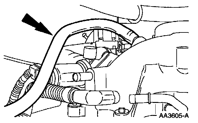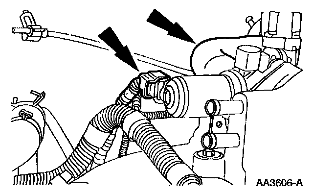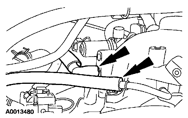 10. Disconnect the PCV vacuum and coolant hoses.
