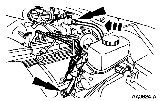 23. Connect the idle air control motor bypass hose and connector.
