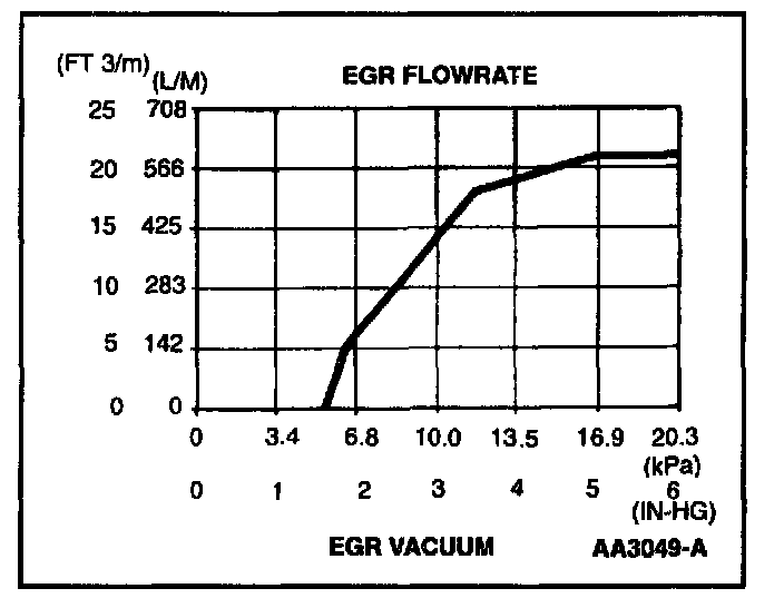 Since EGR flow requirement varies greatly, providing service specifications on flow rate is impractical. The on-board diagnostic system monitors the EGR valve function and triggers a Diagnostic Trouble Code if the test criteria is not met. The EGR valve flow rate is not measured directly as part of the field diagnostic procedures.