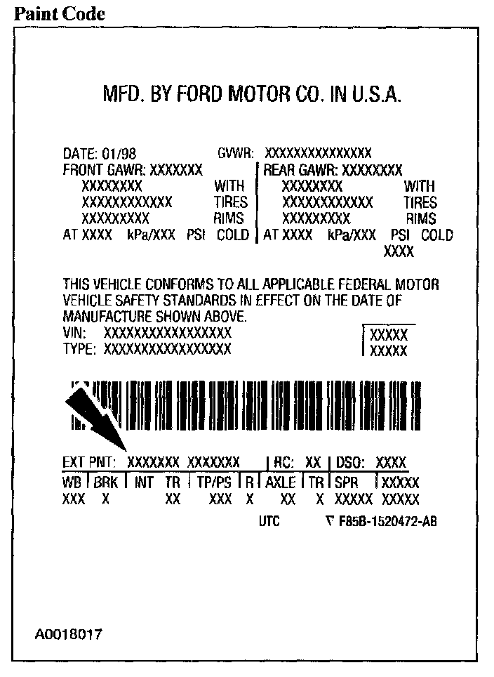 Exterior paint codes may be listed as a two-part code. The first set of characters listed indicate the vehicle primary body color code. The second set of characters listed (if applicable) indicated a two-tone or accent body color code.