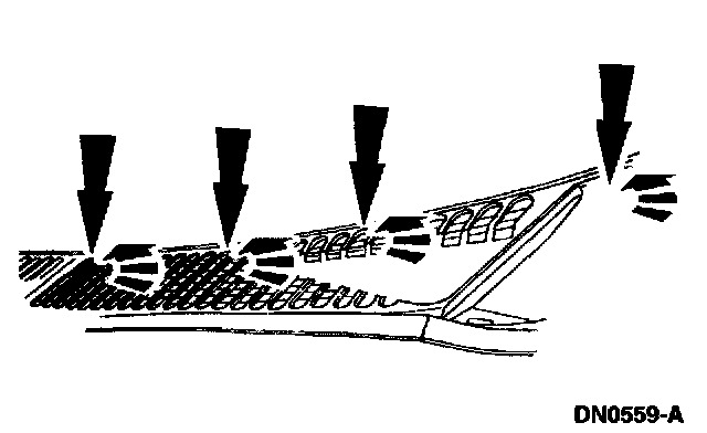 NOTE: Remove the cowl top vent panel from the center to avoid damage to the locating pins at each outer end of the cowl panels.
