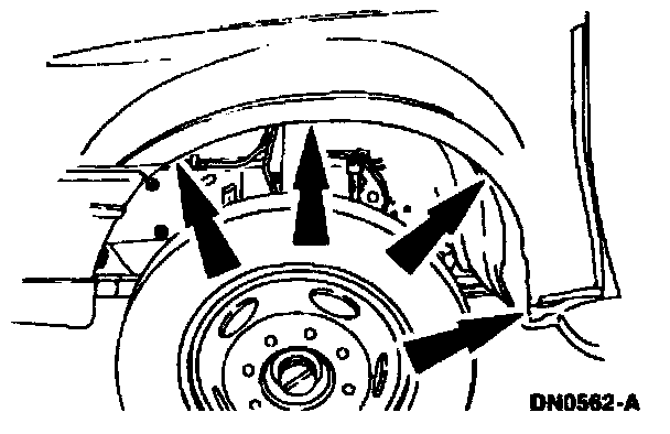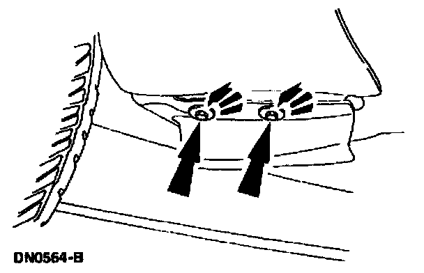 7. Remove the bolts securing the lower rear of the front fender.