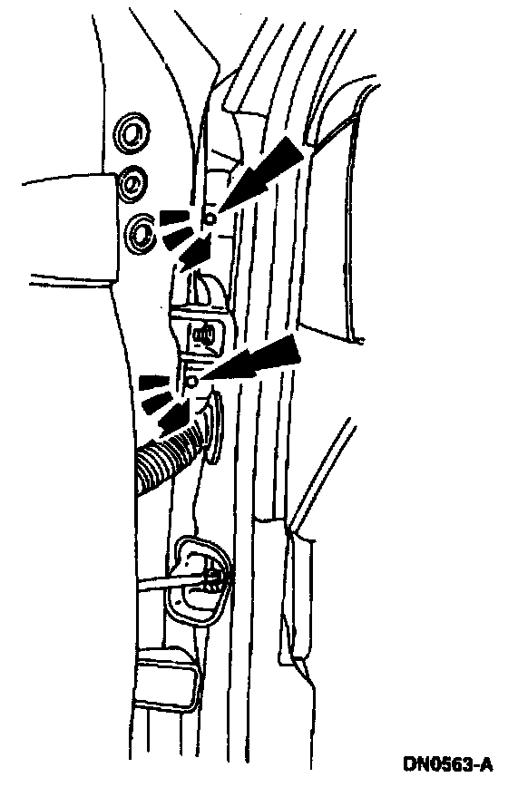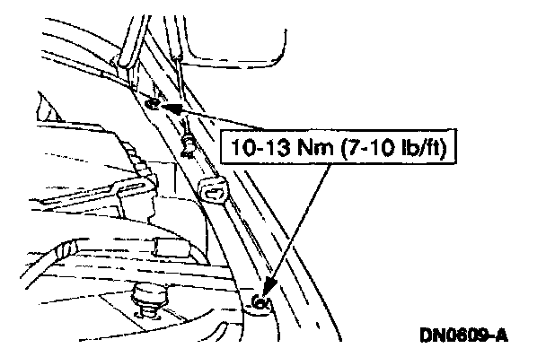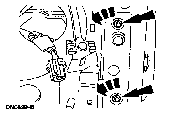 8. Remove the fender-to-radiator grille opening support retaining bolts.
